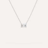 שרשרת יהלום מרחף המשובצת יהלום מעבדה 1/2 קראט אמרלד בזהב לבן 14K. השרשרת מגיעה בעיצוב קלאסי, מיוצרת בעבודת יד כחול לבן.