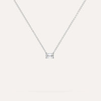 שרשרת יהלום מרחף המשובצת יהלום מעבדה 1/4 קראט אמרלד בזהב לבן 14K. השרשרת מגיעה בעיצוב קלאסי, מיוצרת בעבודת יד כחול לבן.
