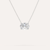 שרשרת יהלום מרחף המשובצת יהלום מעבדה 3 קראט אובל בזהב לבן 14K. השרשרת מגיעה בעיצוב קלאסי, מיוצרת בעבודת יד כחול לבן.