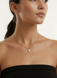 שרשרת יהלום מעבדה מרחף 1 קראט אובל בזהב צהוב 14K. השרשרת בסגנון ונציה באורך 42 ס״מ ומגיעה בעיצוב ייחודי ללא בית זהב אלא השחלה דרך היהלום למראה מינימליסטי ונקי - יהלום מרחף אמיתי!