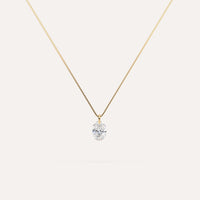 שרשרת יהלום מעבדה מרחף 1/2 קראט אובל בזהב צהוב 14K. השרשרת בסגנון ונציה באורך 42 ס״מ ומגיעה בעיצוב ייחודי ללא בית זהב אלא השחלה דרך היהלום למראה מינימליסטי ונקי - יהלום מרחף אמיתי!