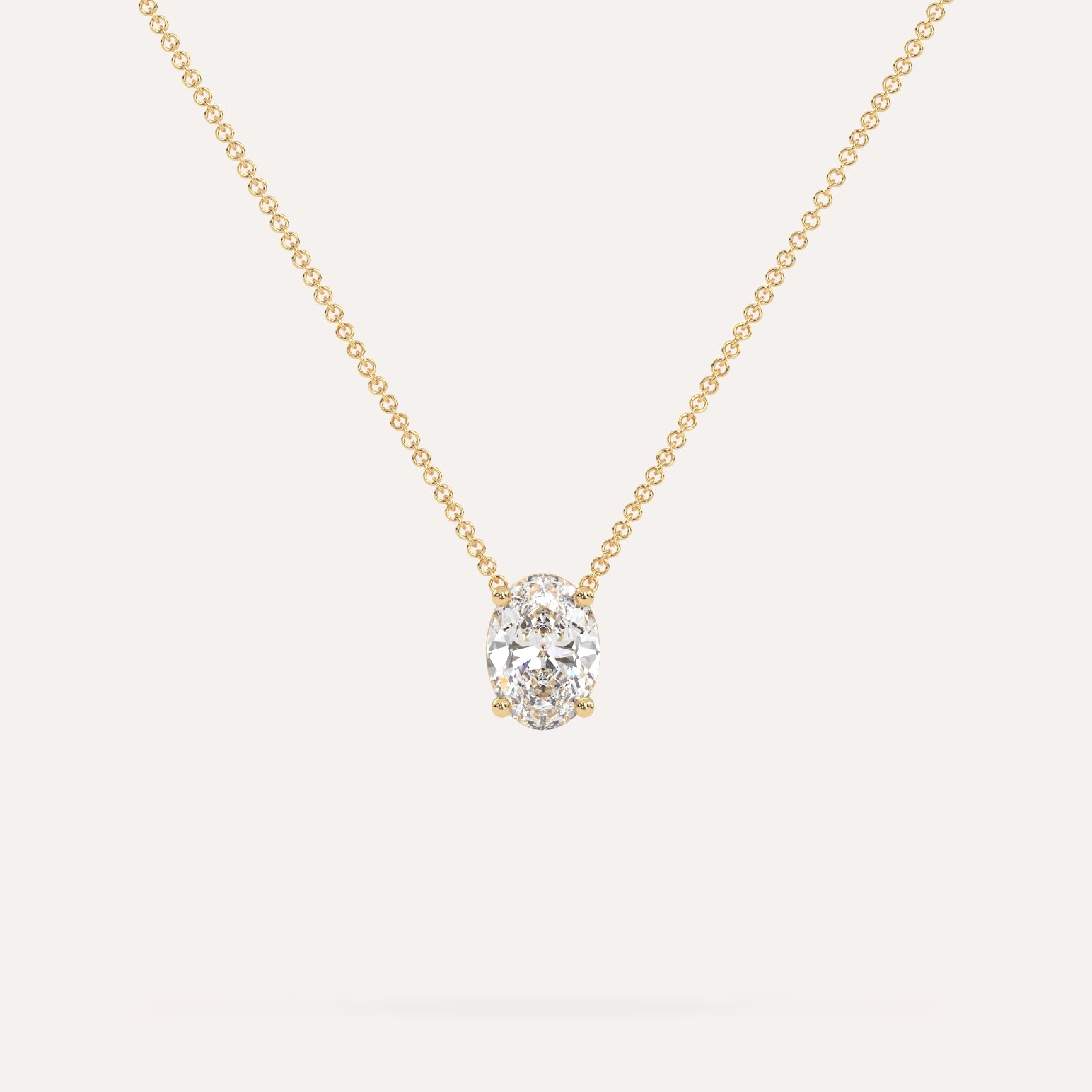 שרשרת יהלום מרחף המשובצת יהלום טבעי 1 קראט אובל בזהב צהוב 14K. השרשרת מגיעה בעיצוב קלאסי, מיוצרת בעבודת יד כחול לבן.