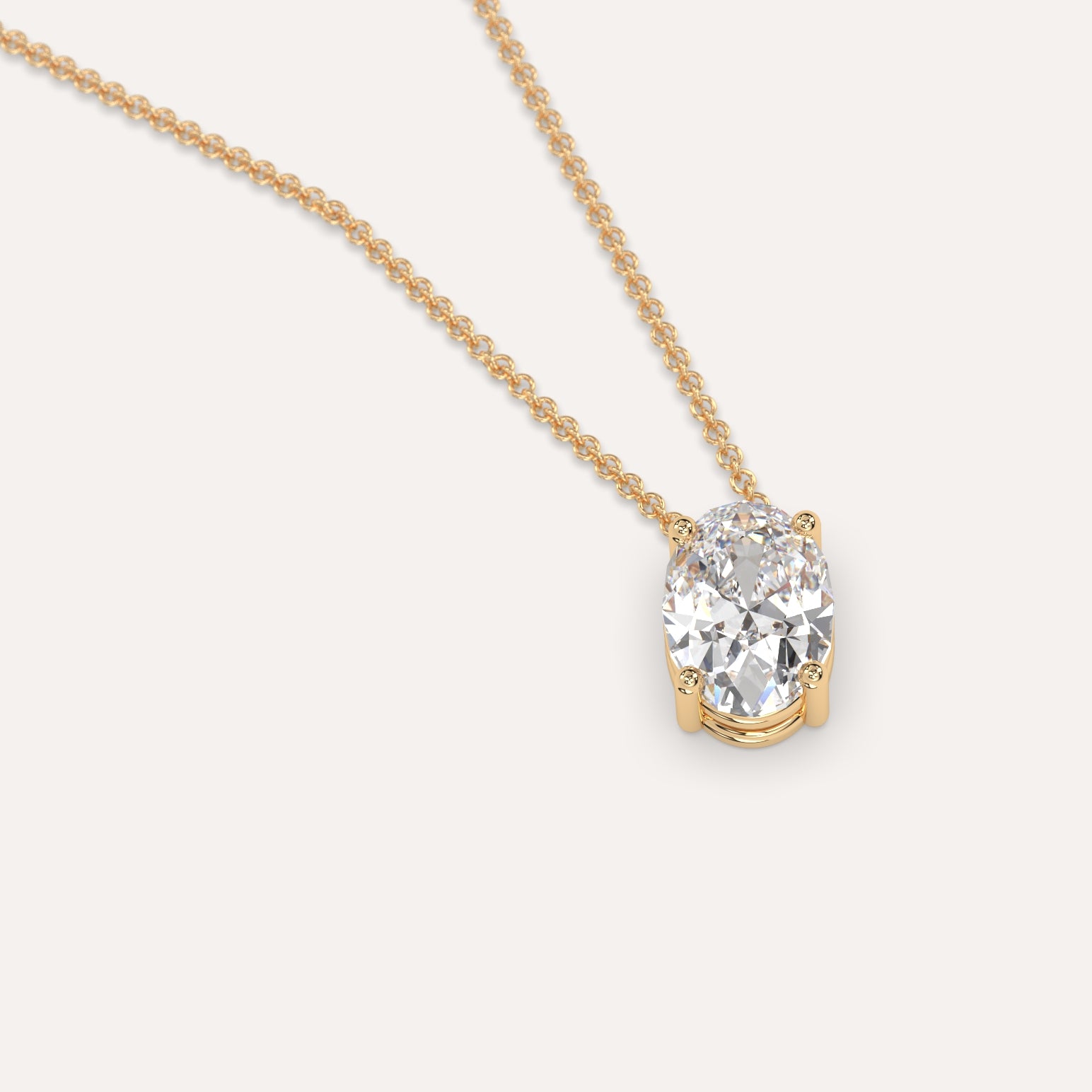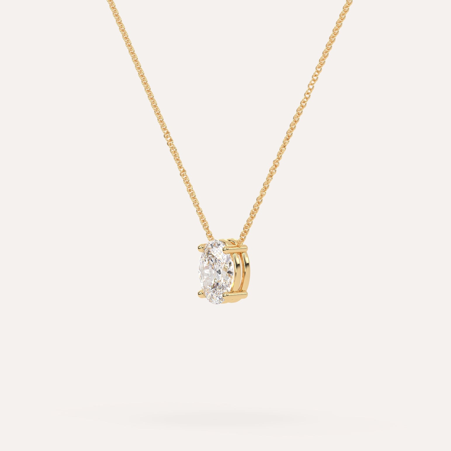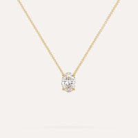 שרשרת יהלום מרחף המשובצת יהלום מעבדה 1 קראט אובל בזהב צהוב 14K. השרשרת מגיעה בעיצוב קלאסי, מיוצרת בעבודת יד כחול לבן.
