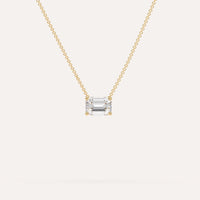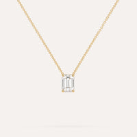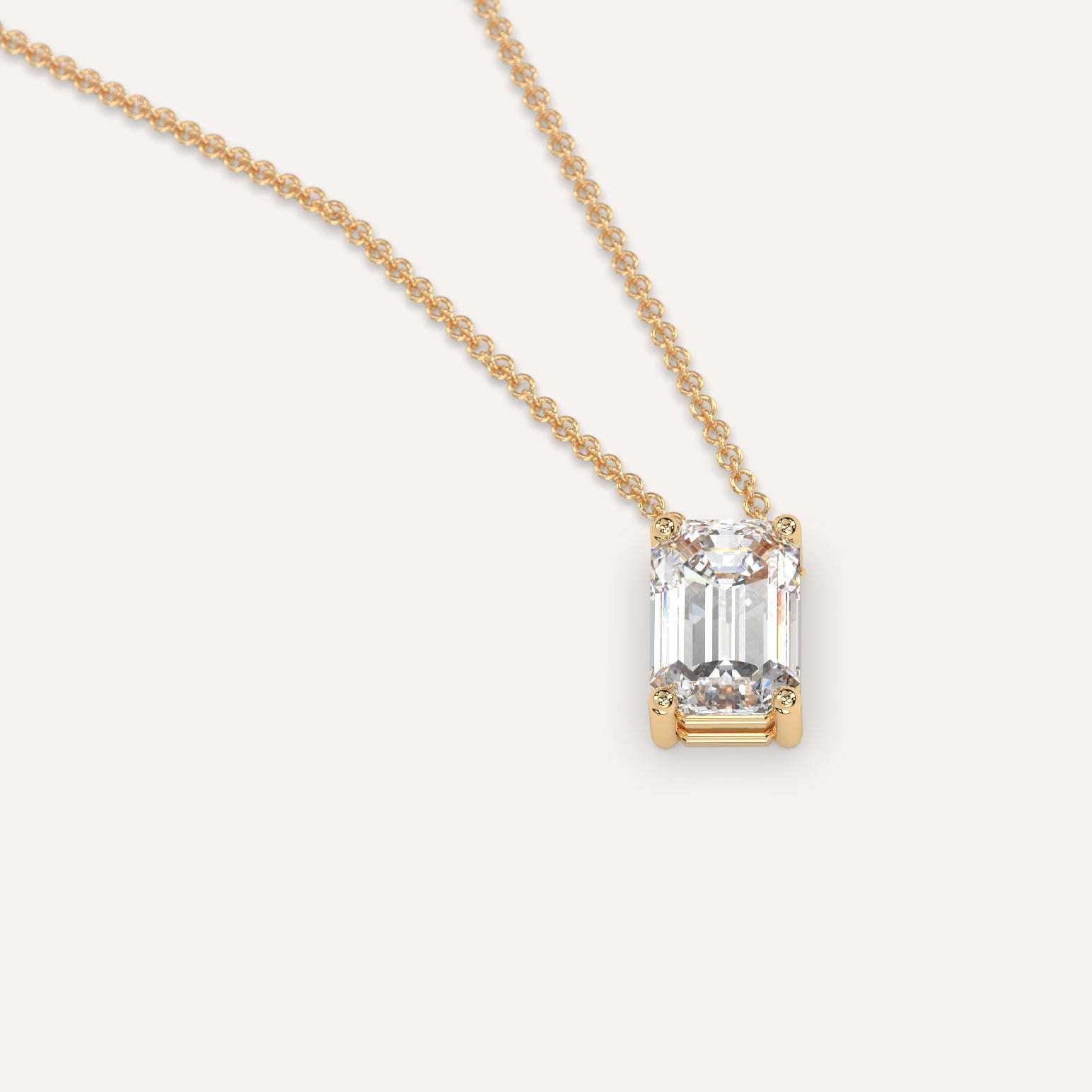 שרשרת יהלום מרחף המשובצת יהלום מעבדה 1 קראט אמרלד בזהב צהוב 14K. השרשרת מגיעה בעיצוב קלאסי, מיוצרת בעבודת יד כחול לבן.