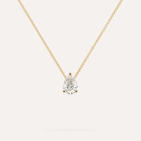 שרשרת יהלום מרחף המשובצת יהלום מעבדה 1 קראט טיפה בזהב צהוב 14K. השרשרת מגיעה בעיצוב קלאסי, מיוצרת בעבודת יד כחול לבן.