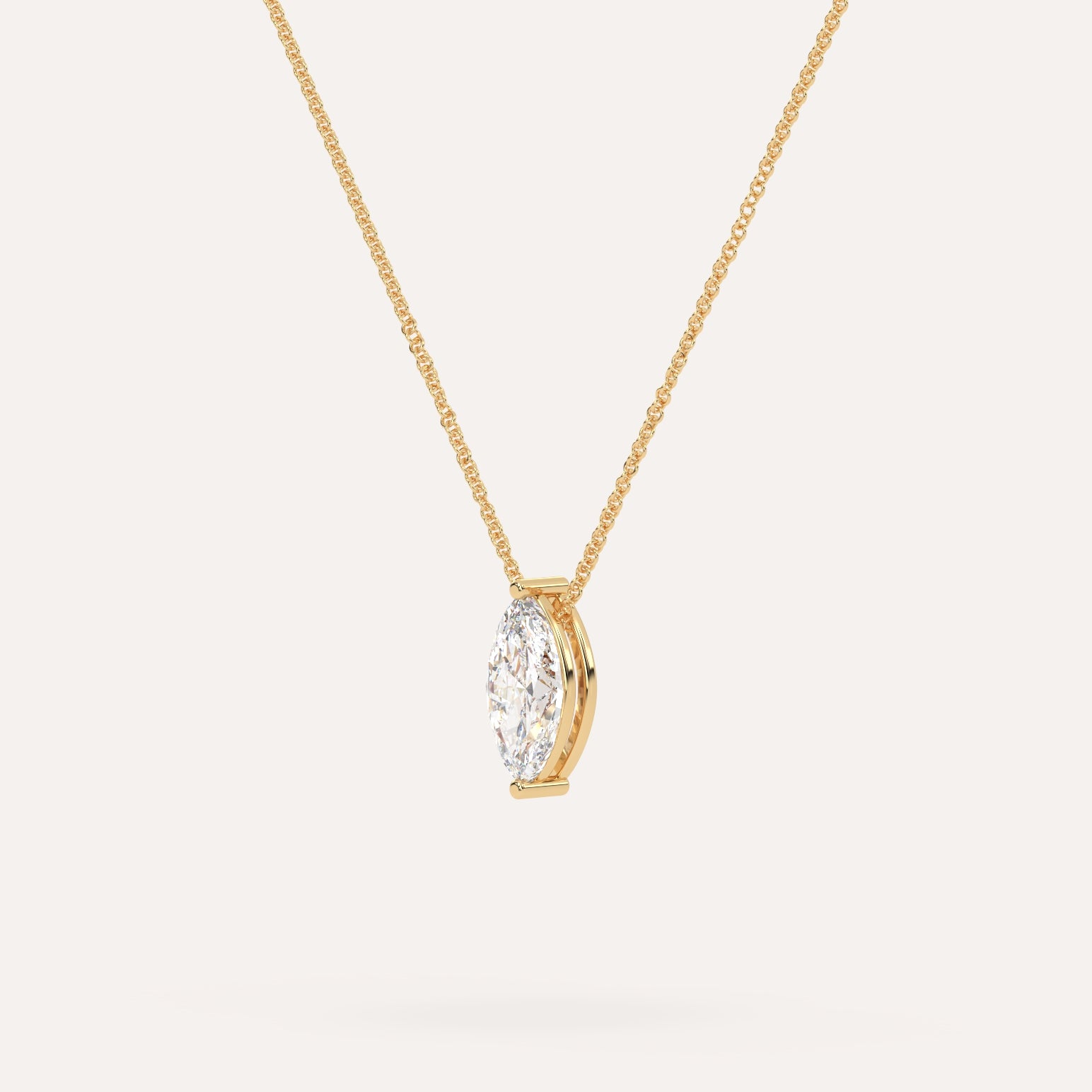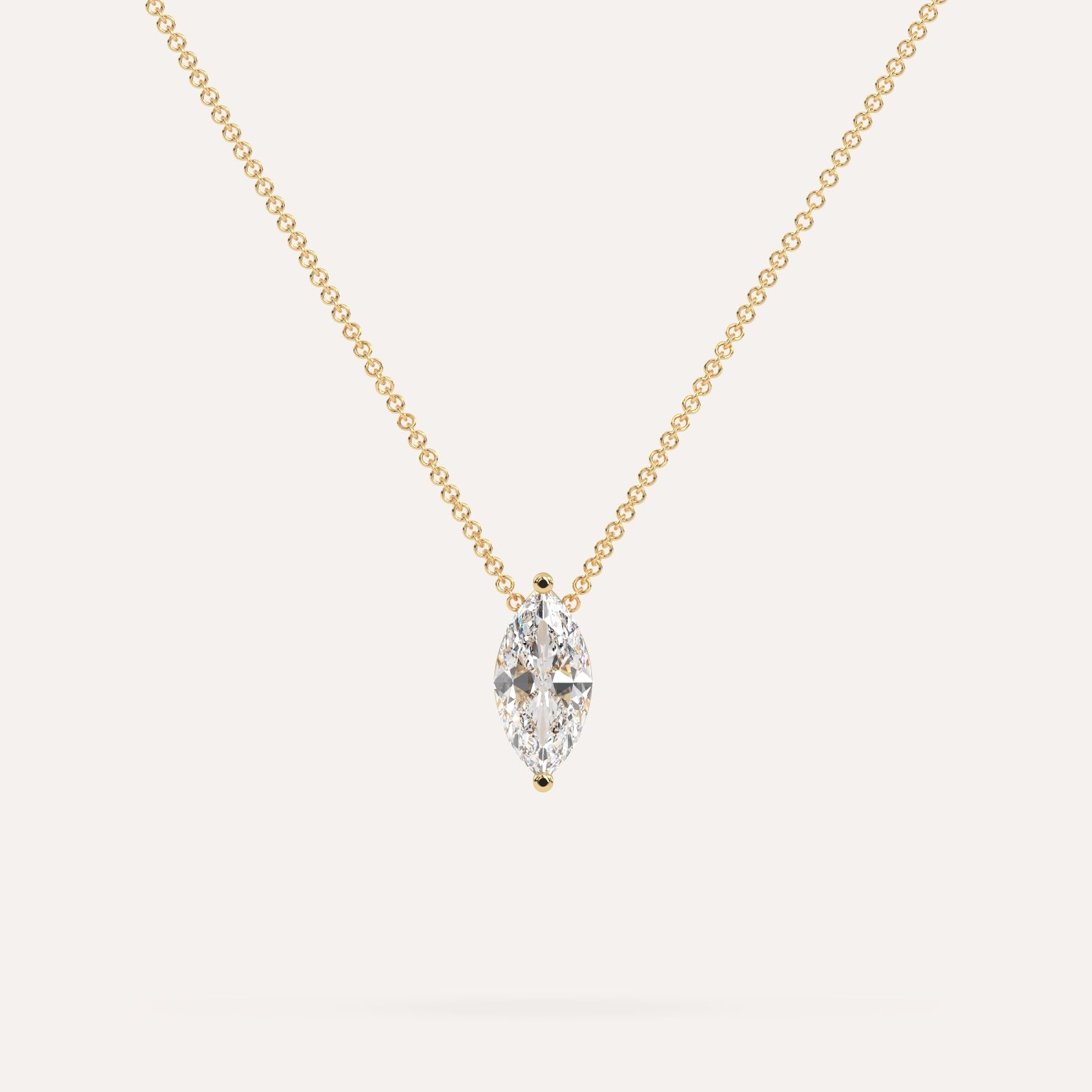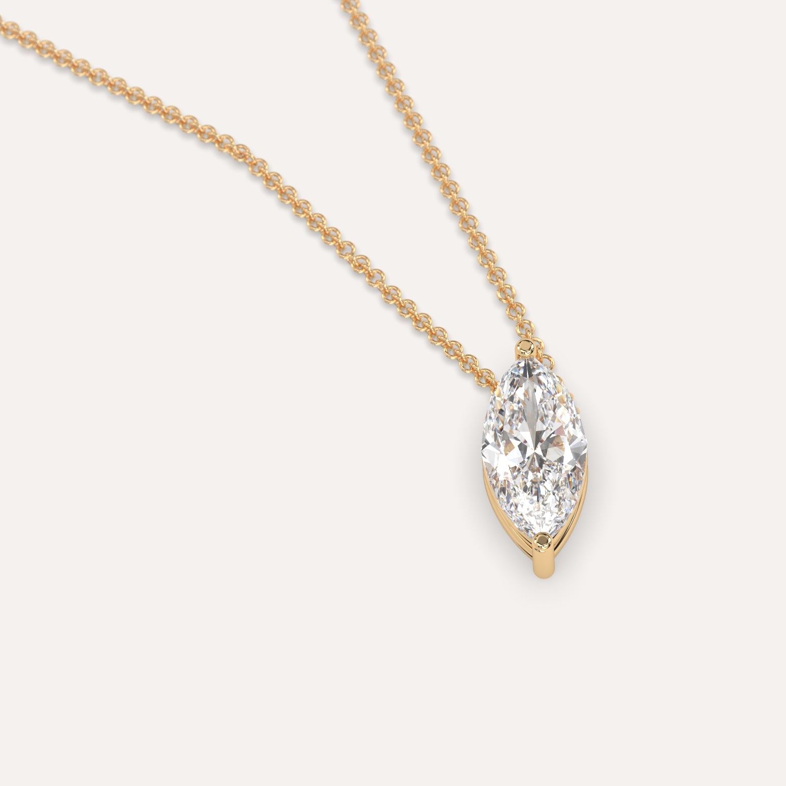 שרשרת יהלום מרחף המשובצת יהלום מעבדה 1 קראט מרקיזה בזהב צהוב 14K. השרשרת מגיעה בעיצוב קלאסי, מיוצרת בעבודת יד כחול לבן.