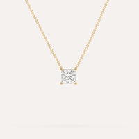 שרשרת יהלום מרחף המשובצת יהלום טבעי 1 קראט פרינסס בזהב צהוב 14K. השרשרת מגיעה בעיצוב קלאסי, מיוצרת בעבודת יד כחול לבן.