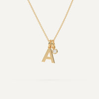 שרשרת אות A באנגלית מקולקציית שרשראות אותויות זהב הבלעדית שלנו. תליון אות הזהב מגיע בגודל כ1 ס״מ בזהב לבן או זהוב 14K לבחירה, יחד עם שרשרת זהב תואמת באורך משתנה של 40/45 ס״מ. ניתן להוסיף עוד ניצוץ עם תליון יהלום מעבדה או טבעי בגודל של 0.05 קראט (3מ״מ).