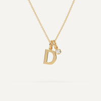 שרשרת אות D באנגלית מקולקציית שרשראות אותויות זהב הבלעדית שלנו. תליון אות הזהב מגיע בגודל כ1 ס״מ בזהב לבן או זהוב 14K לבחירה, יחד עם שרשרת זהב תואמת באורך משתנה של 40/45 ס״מ. ניתן להוסיף עוד ניצוץ עם תליון יהלום מעבדה או טבעי בגודל של 0.05 קראט (3מ״מ).