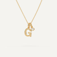 שרשרת אות G באנגלית מקולקציית שרשראות אותויות זהב הבלעדית שלנו. תליון אות הזהב מגיע בגודל כ1 ס״מ בזהב לבן או זהוב 14K לבחירה, יחד עם שרשרת זהב תואמת באורך משתנה של 40/45 ס״מ. ניתן להוסיף עוד ניצוץ עם תליון יהלום מעבדה או טבעי בגודל של 0.05 קראט (3מ״מ).