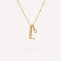 שרשרת אות L באנגלית מקולקציית שרשראות אותויות זהב הבלעדית שלנו. תליון אות הזהב מגיע בגודל כ1 ס״מ בזהב לבן או זהוב 14K לבחירה, יחד עם שרשרת זהב תואמת באורך משתנה של 40/45 ס״מ. ניתן להוסיף עוד ניצוץ עם תליון יהלום מעבדה או טבעי בגודל של 0.05 קראט (3מ״מ).