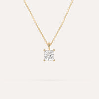 שרשרת יהלום קלאסית המשובצת יהלום מעבדה 1 קראט פרינסס בזהב צהוב 14K. השרשרת מגיעה בעיצוב נקי, מיוצרת בעבודת יד כחול לבן.