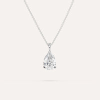 שרשרת יהלום קלאסית המשובצת יהלום מעבדה 2 קראט טיפה בזהב לבן 14K. השרשרת מגיעה בעיצוב נקי, מיוצרת בעבודת יד כחול לבן.