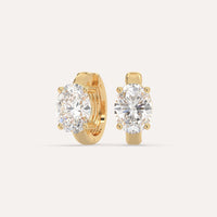 עגילי חישוק יהלומים סוליטר, משובצים 3 קראט יהלומים סה״כ בזהב צהוב 14K העגילים מגיעים בעיצוב קלאסי ונצחי המתאים לענידה יומיומית.