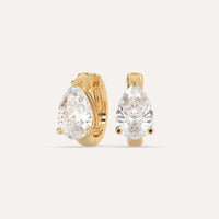 עגילי חישוק יהלומים סוליטר, משובצים 3 קראט יהלומים סה״כ בזהב צהוב 14K העגילים מגיעים בעיצוב קלאסי ונצחי המתאים לענידה יומיומית.