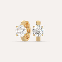 עגילי חישוק יהלומים סוליטר, משובצים 3 קראט יהלומים סה״כ בזהב צהוב 14K העגילים מגיעים בעיצוב קלאסי ונצחי המתאים לענידה יומיומית.