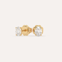 עגילי יהלום אובל צמודים לאוזן, משובצים 1 קראט יהלומים סה״כ בזהב צהוב 14K. בעיצוב קלאסי ונצחי המתאים לענידה יומיומית.