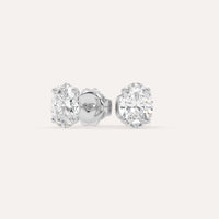 עגילי יהלום אובל צמודים לאוזן, משובצים 2 קראט יהלומים סה״כ בזהב לבן 14K. בעיצוב קלאסי ונצחי המתאים לענידה יומיומית.