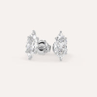 עגילי יהלום מרקיזה צמודים לאוזן, משובצים 3 קראט יהלומים סה״כ בזהב לבן 14K. בעיצוב קלאסי ונצחי המתאים לענידה יומיומית.