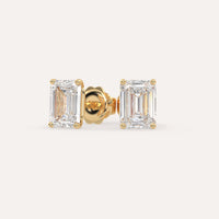 עגילי יהלום אמרלד צמודים לאוזן, משובצים 4 קראט יהלומים סה״כ בזהב צהוב 14K. בעיצוב קלאסי ונצחי המתאים לענידה יומיומית.