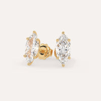 עגילי יהלום מרקיזה צמודים לאוזן, משובצים 4 קראט יהלומים סה״כ בזהב צהוב 14K. בעיצוב קלאסי ונצחי המתאים לענידה יומיומית.