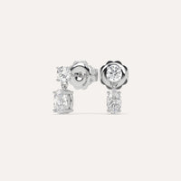 עגילי יהלום אובל תלויים, משובצים 1 קראט יהלומים סה״כ בזהב לבן 14K. בעיצוב קלאסי ונצחי המתאים לענידה יומיומית.