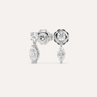 עגילי יהלום מרקיזה תלויים, משובצים 1 קראט יהלומים סה״כ בזהב לבן 14K. בעיצוב קלאסי ונצחי המתאים לענידה יומיומית.