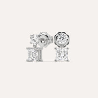 עגילי יהלום פרינסס תלויים, משובצים 2 קראט יהלומים סה״כ בזהב לבן 14K. בעיצוב קלאסי ונצחי המתאים לענידה יומיומית.