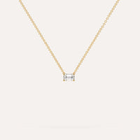 שרשרת יהלום מרחף המשובצת יהלום טבעי 1/4 קראט אמרלד בזהב צהוב 14K. השרשרת מגיעה בעיצוב קלאסי, מיוצרת בעבודת יד כחול לבן.