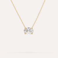 שרשרת יהלום מרחף המשובצת יהלום טבעי 2 קראט אובל בזהב צהוב 14K. השרשרת מגיעה בעיצוב קלאסי, מיוצרת בעבודת יד כחול לבן.