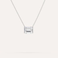 שרשרת יהלום מרחף המשובצת יהלום טבעי 2 קראט אמרלד בזהב לבן 14K. השרשרת מגיעה בעיצוב קלאסי, מיוצרת בעבודת יד כחול לבן.