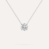 שרשרת יהלום מרחף המשובצת יהלום טבעי 2 קראט עגול בזהב לבן 14K. השרשרת מגיעה בעיצוב קלאסי, מיוצרת בעבודת יד כחול לבן.