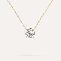 שרשרת יהלום מרחף המשובצת יהלום טבעי 3 קראט עגול בזהב צהוב 14K. השרשרת מגיעה בעיצוב קלאסי, מיוצרת בעבודת יד כחול לבן.