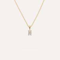 שרשרת יהלום קלאסית המשובצת יהלום טבעי 1/4 קראט אמרלד בזהב צהוב 14K. השרשרת מגיעה בעיצוב נקי, מיוצרת בעבודת יד כחול לבן.