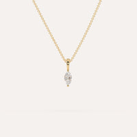 שרשרת יהלום קלאסית המשובצת יהלום טבעי 1/4 קראט מרקיזה בזהב צהוב 14K. השרשרת מגיעה בעיצוב נקי, מיוצרת בעבודת יד כחול לבן.
