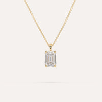 שרשרת יהלום קלאסית המשובצת יהלום טבעי 2 קראט אמרלד בזהב צהוב 14K. השרשרת מגיעה בעיצוב נקי, מיוצרת בעבודת יד כחול לבן.