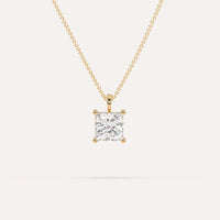 שרשרת יהלום קלאסית המשובצת יהלום טבעי 2 קראט פרינסס בזהב צהוב 14K. השרשרת מגיעה בעיצוב נקי, מיוצרת בעבודת יד כחול לבן.