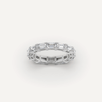 אלגנטיות עדינה ומתפרצת- טבעת איטרניטי בשיבוץ "מזרח ומערב" של יהלומים בחיתוך אמרלד. היהלומים משובצים בטבעת זהב לבן בעובי 3 מ"מ באופן ייחודי ובצורה מאוזנת, בעיצוב המציע נוחות מקסימלית לצד וורסטיליות ורב גוניות- המאפשרות ענידה של הטבעת בלבוש יום יומי או במראה ערב נוצץ.