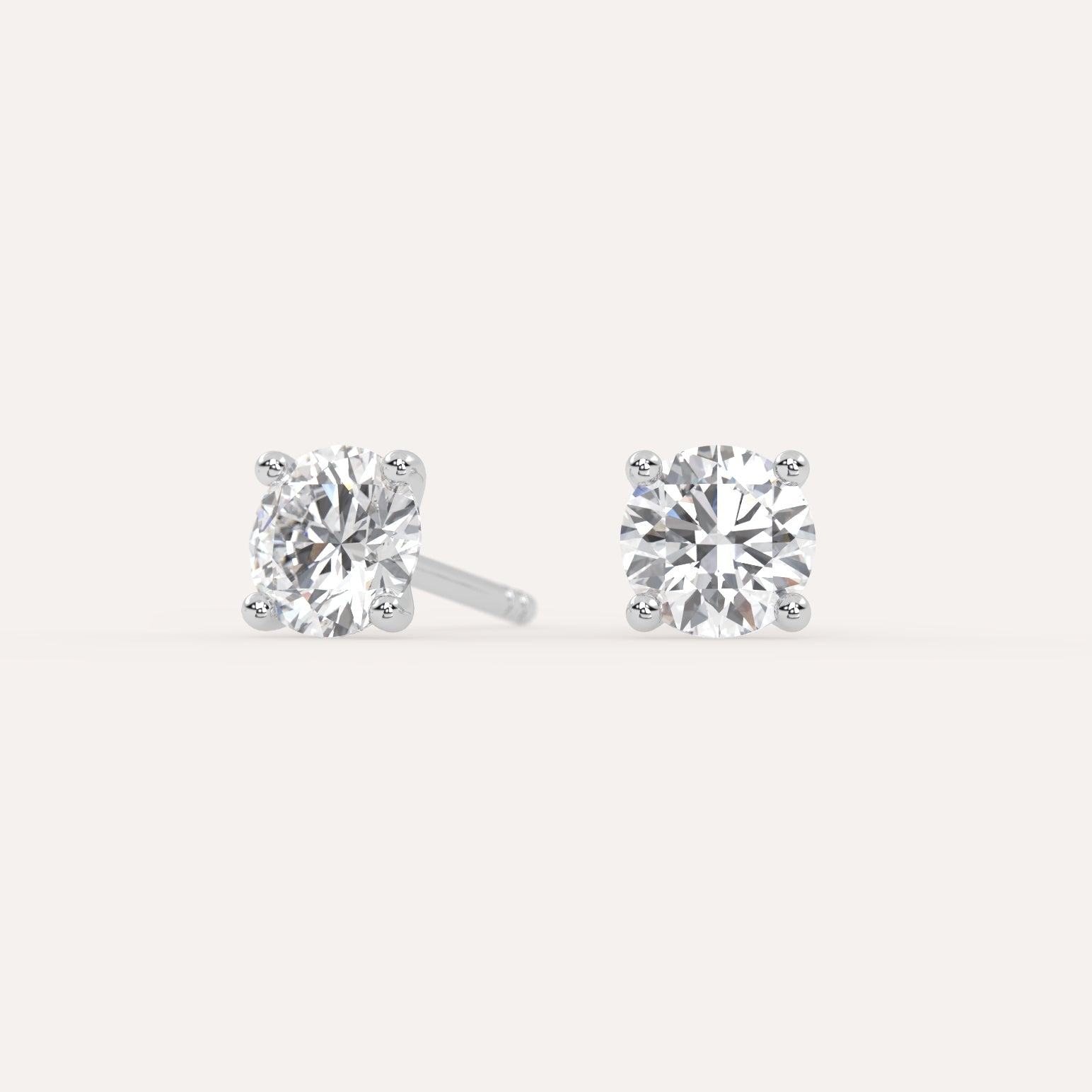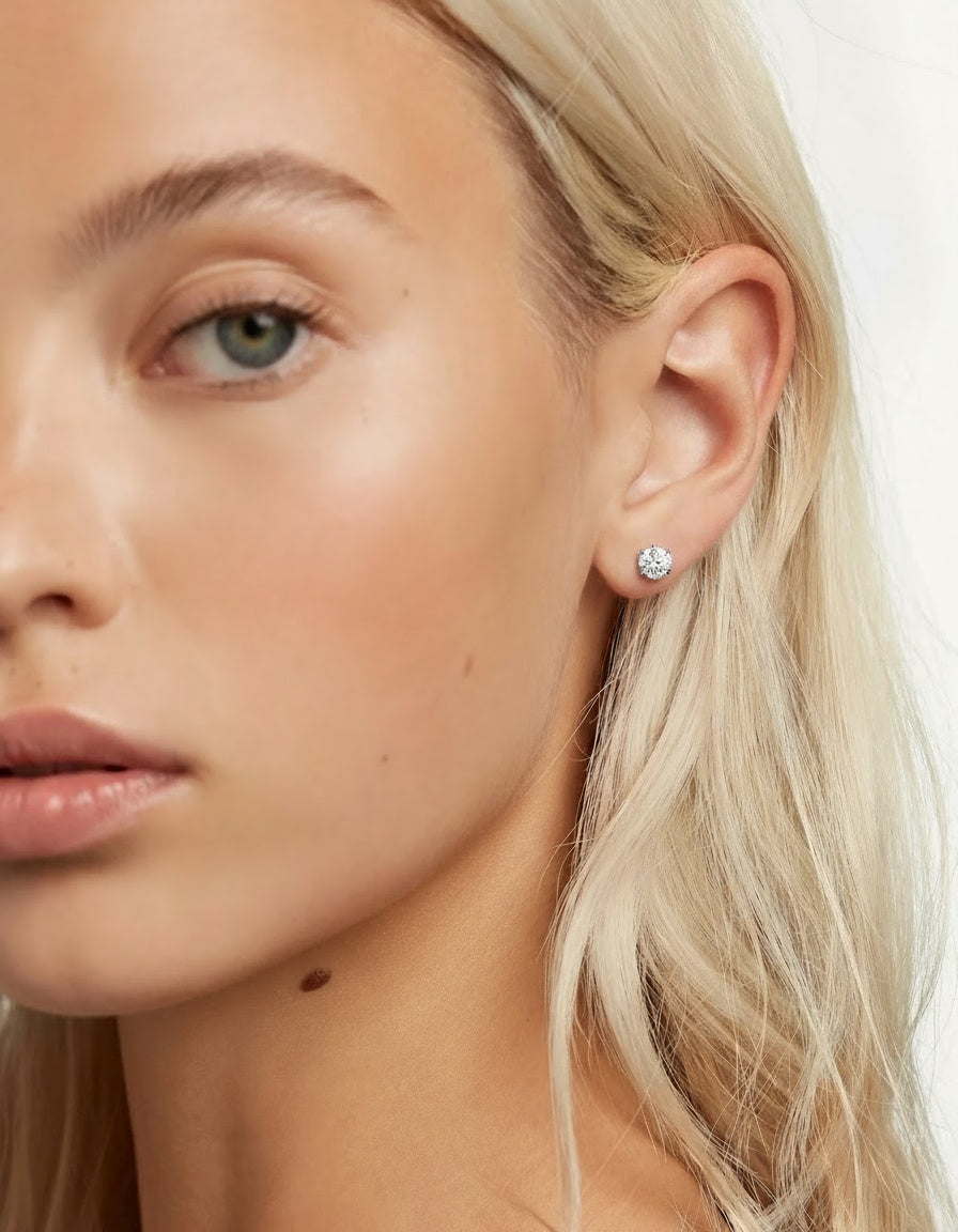 עגילי יהלום עגול צמודים לאוזן, משובצים 1 קראט יהלומים סה״כ בזהב לבן 14K. בעיצוב קלאסי ונצחי המתאים לענידה יומיומית.