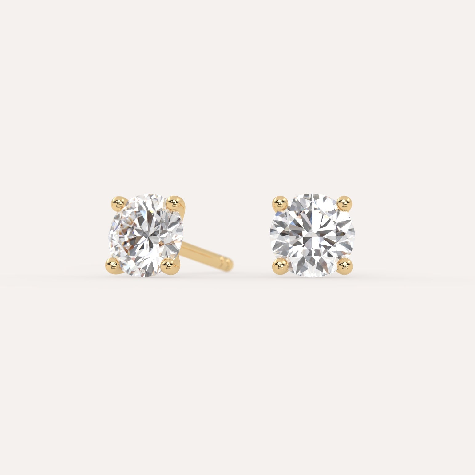 עגילי יהלום עגול צמודים לאוזן, משובצים 1 קראט יהלומים סה״כ בזהב צהוב 14K. בעיצוב קלאסי ונצחי המתאים לענידה יומיומית.