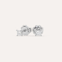 עגילי יהלום פרינסס צמודים לאוזן, משובצים 1/2 קראט יהלומים סה״כ בזהב לבן 14K. בעיצוב קלאסי ונצחי המתאים לענידה יומיומית.