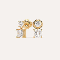 עגילי יהלום פרינסס תלויים, משובצים 2 קראט יהלומים סה״כ בזהב צהוב 14K. בעיצוב קלאסי ונצחי המתאים לענידה יומיומית.