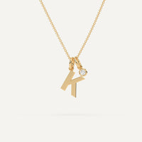 שרשרת אות K באנגלית מקולקציית שרשראות אותויות זהב הבלעדית שלנו. תליון אות הזהב מגיע בגודל כ1 ס״מ בזהב לבן או זהוב 14K לבחירה, יחד עם שרשרת זהב תואמת באורך משתנה של 40/45 ס״מ. ניתן להוסיף עוד ניצוץ עם תליון יהלום מעבדה או טבעי בגודל של 0.05 קראט (3מ״מ).