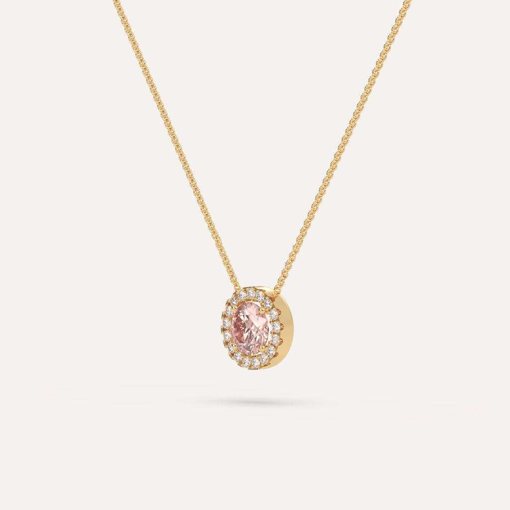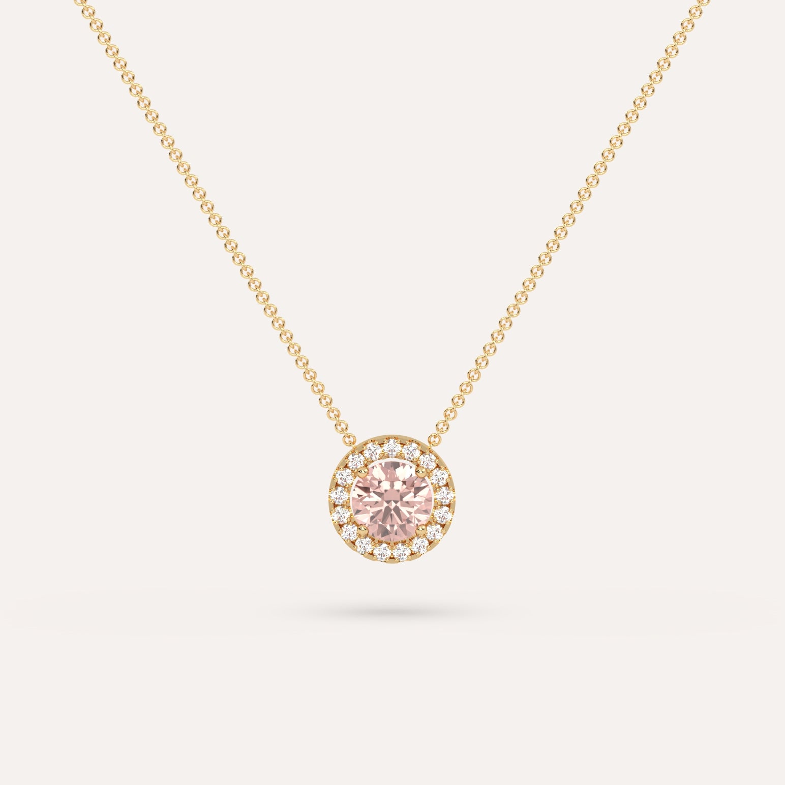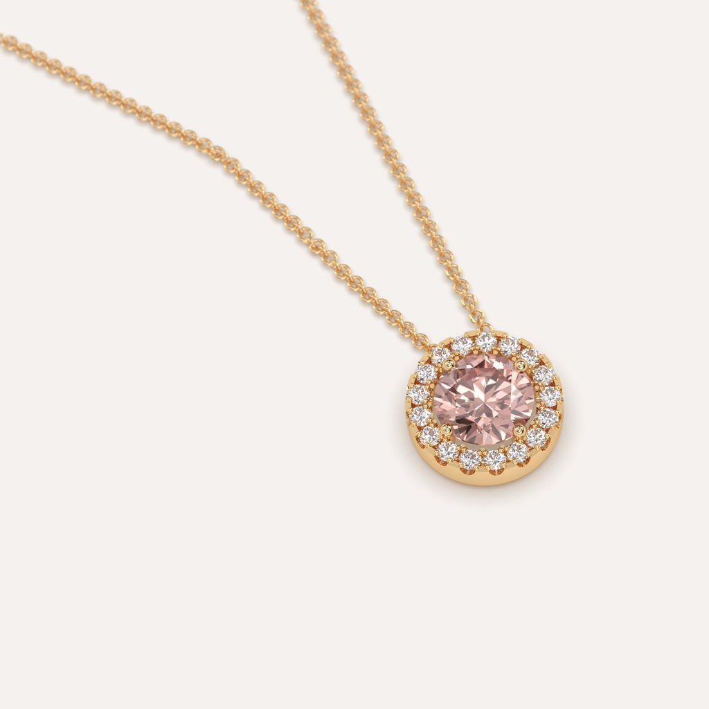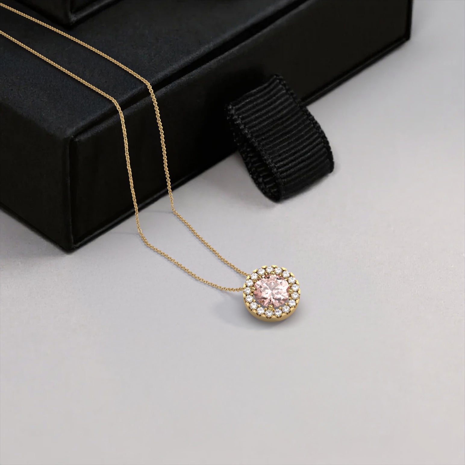 שרשרת יהלום ורוד הילה עם הילת יהלומים, 1/2 קראט עגול