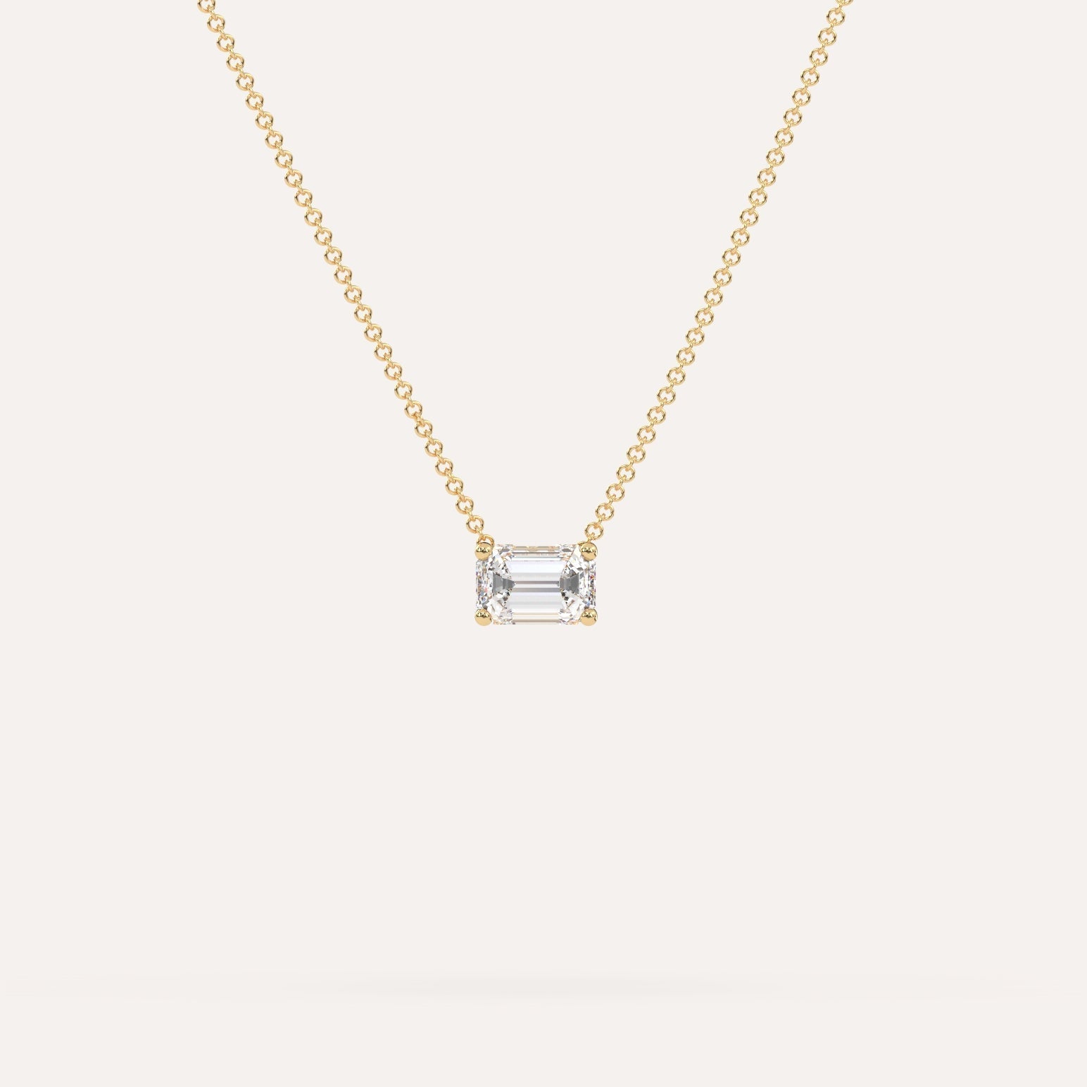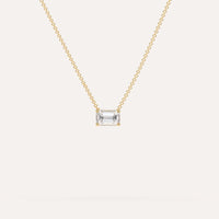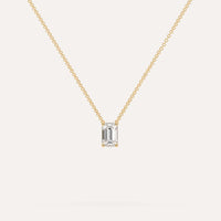 שרשרת יהלום מרחף המשובצת יהלום טבעי 1/2 קראט אמרלד בזהב צהוב 14K. השרשרת מגיעה בעיצוב קלאסי, מיוצרת בעבודת יד כחול לבן.