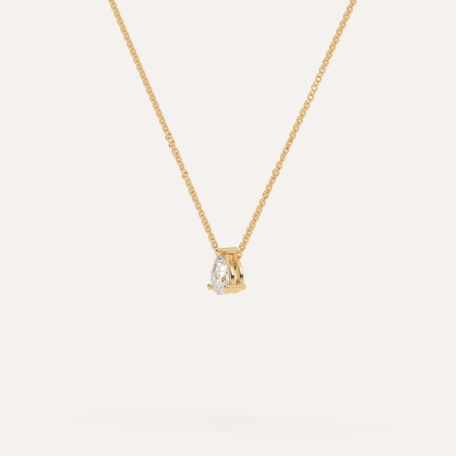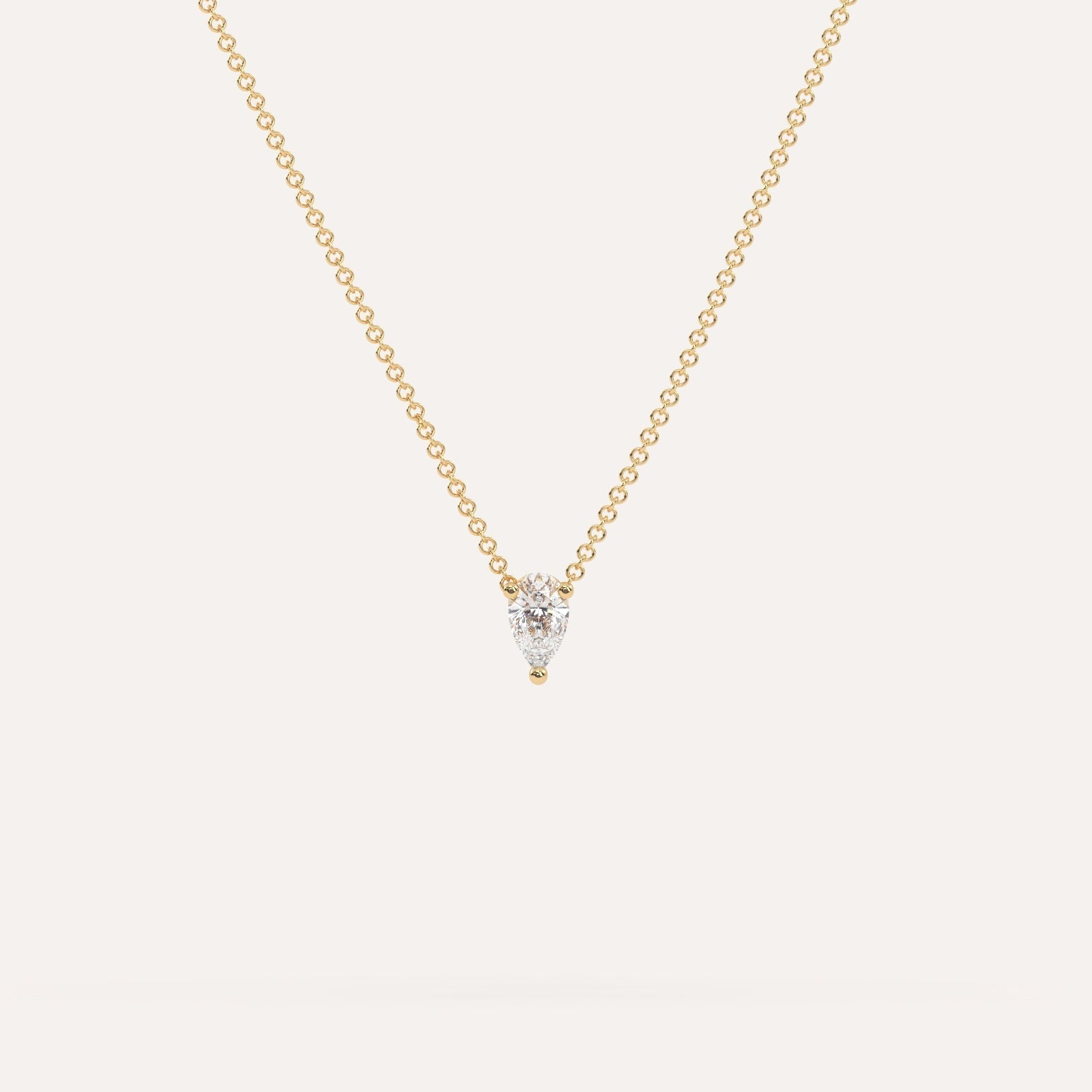 שרשרת יהלום מרחף המשובצת יהלום טבעי 1/2 קראט טיפה בזהב צהוב 14K. השרשרת מגיעה בעיצוב קלאסי, מיוצרת בעבודת יד כחול לבן.