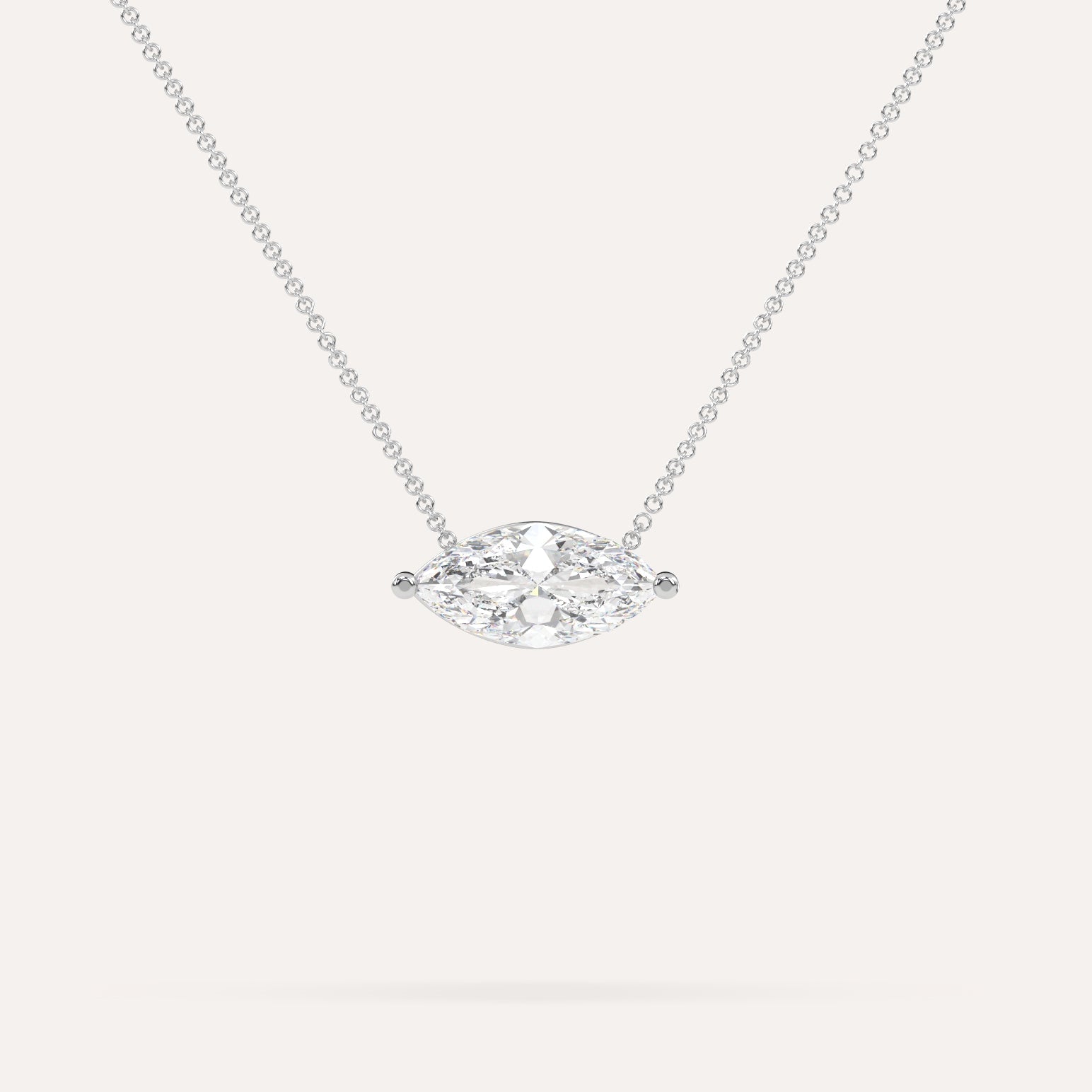 שרשרת יהלום מרחף המשובצת יהלום מעבדה 2 קראט מרקיזה בזהב לבן 14K. השרשרת מגיעה בעיצוב קלאסי, מיוצרת בעבודת יד כחול לבן.