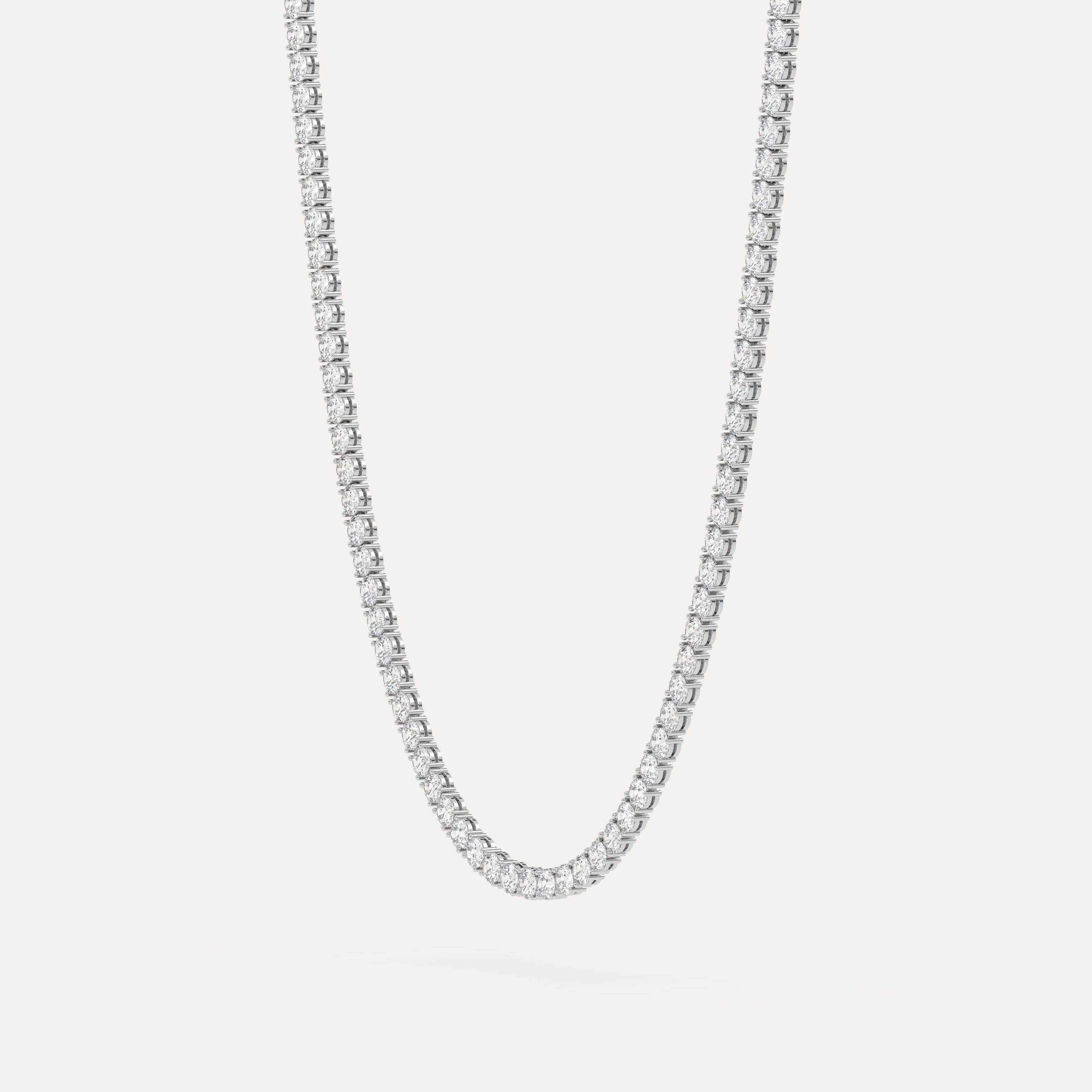 שרשרת טניס יהלומים עם יהלומי מעבדה באיכות F/VS1 במשקל 16 קראט. השרשרת מגיעה בקוספא מהודרת בזהב לבן 14K, בעיצוב מרהיב ונוצץ.