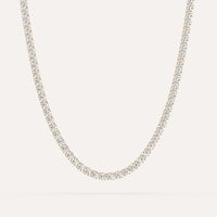 שרשרת טניס יהלומים עם יהלומי מעבדה באיכות F/VS1 במשקל 25 קראט. השרשרת מגיעה בקוספא מהודרת בזהב צהוב 14K, בעיצוב מרהיב ונוצץ.