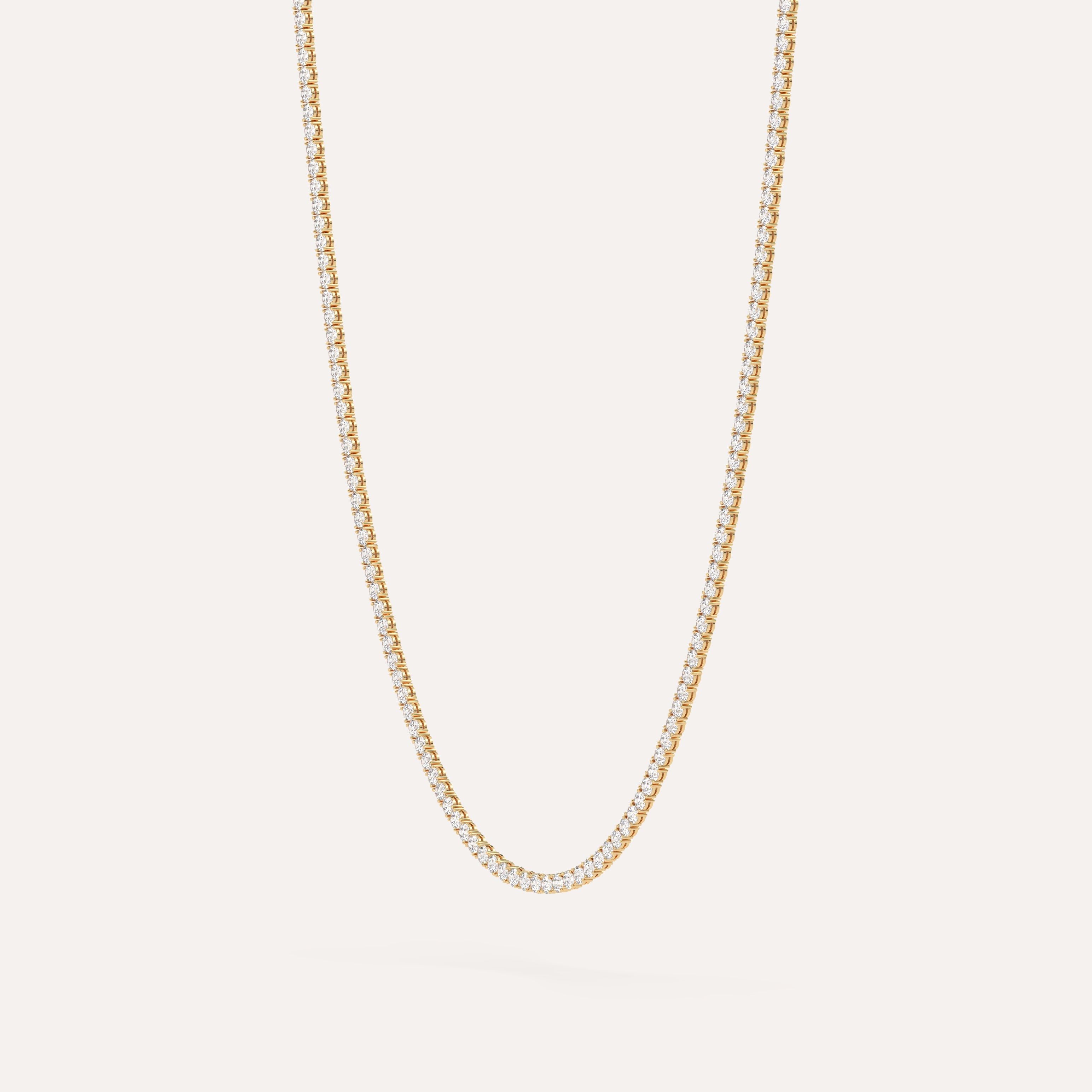 שרשרת טניס יהלומים עם יהלומים טבעיים באיכות G/SI1 במשקל 5 קראט. השרשרת מגיעה בקוספא מהודרת בזהב צהוב 14K, בעיצוב מרהיב ונוצץ.